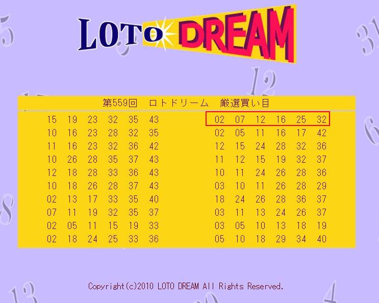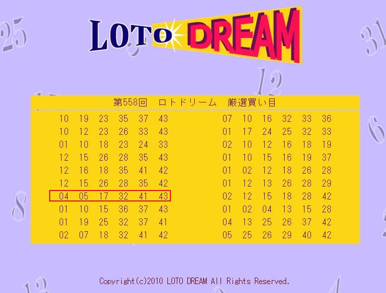 で、気になるロトドリームの予想ですがこんな感じでした。
